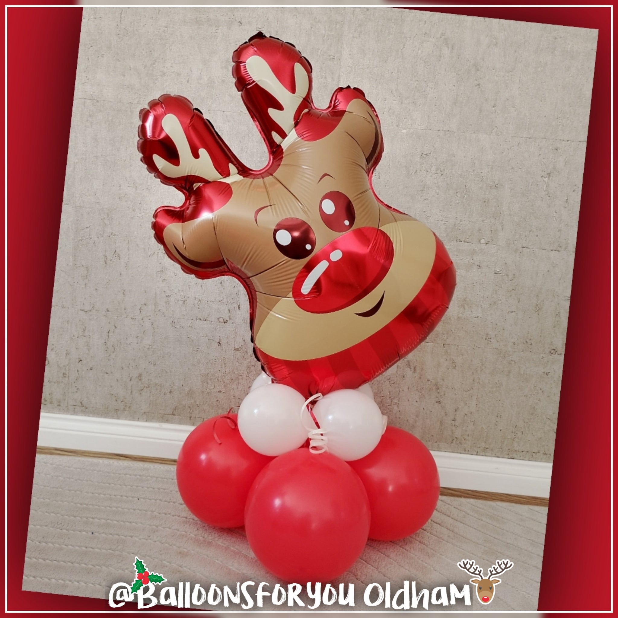 This medium, table-top sized REINDEER balloon stack makes a perfect addition to your Christmas celebrations.
